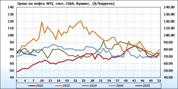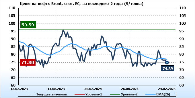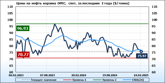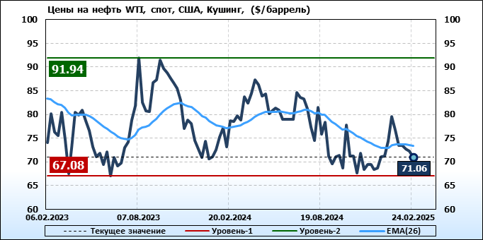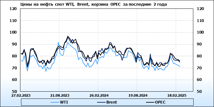 Нефть. Мировые цены спот по сортам и базисам. Данные на 27.02.2025