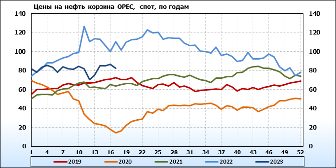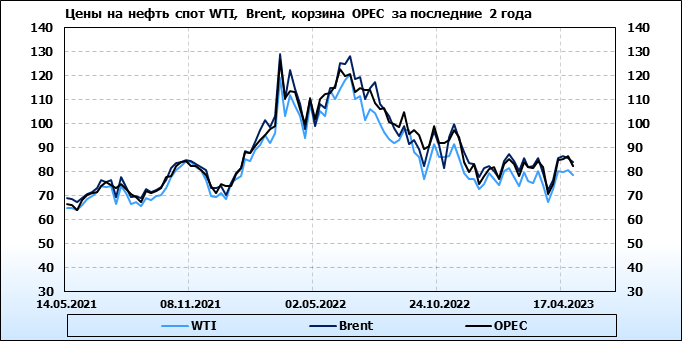 Нефть. Мировые цены спот по сортам и базисам. Данные на 27.04.2023