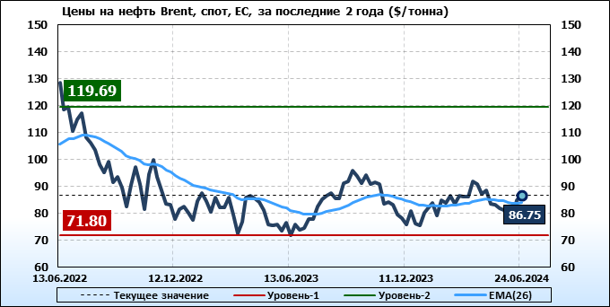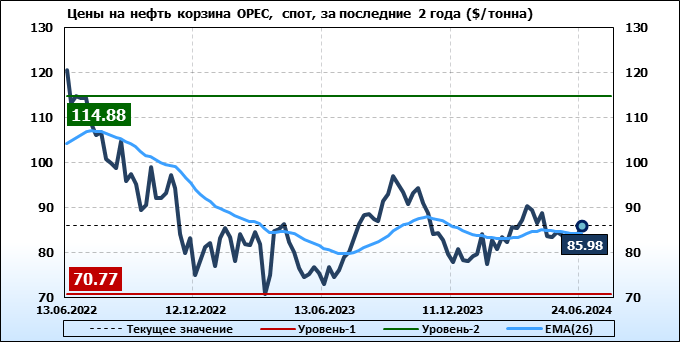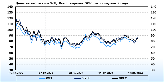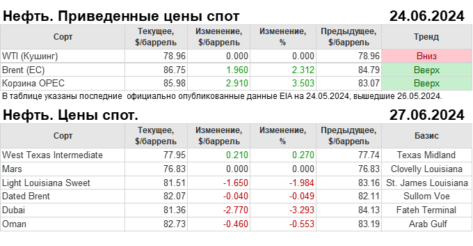 Нефть. Мировые цены спот по сортам и базисам. Данные на 27.06.2024