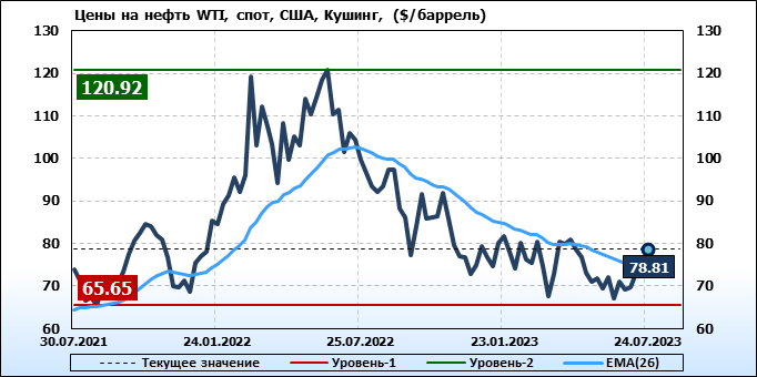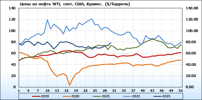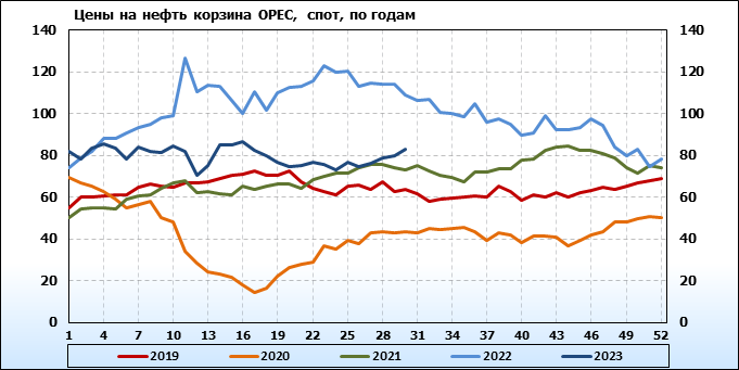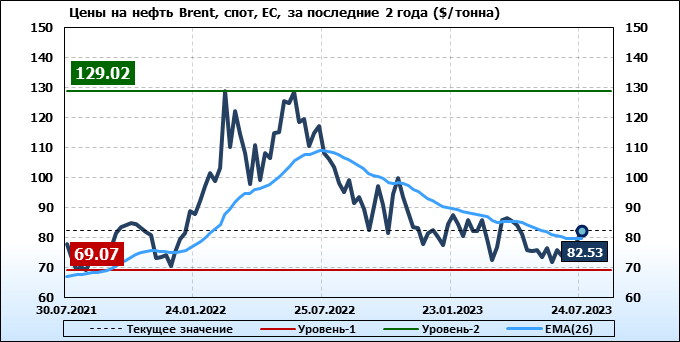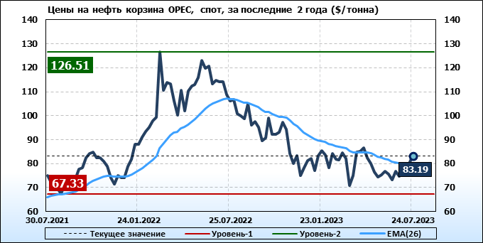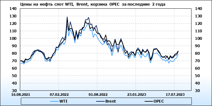 Нефть. Мировые цены спот по сортам и базисам. Данные на 27.07.2023