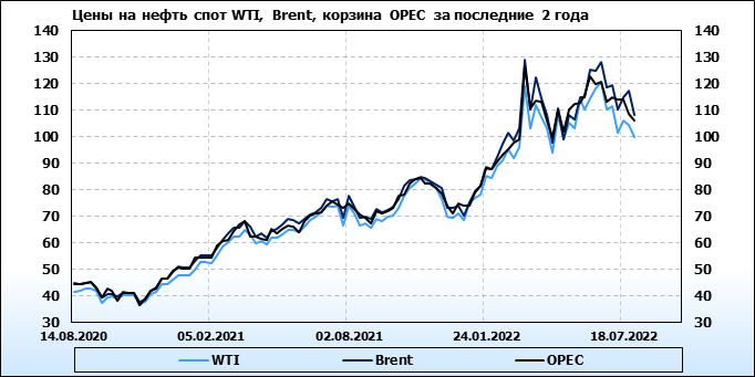 Нефть. Мировые цены спот по сортам и базисам. Данные на 28.07.2022