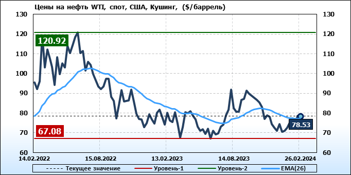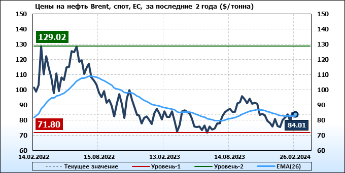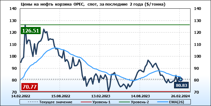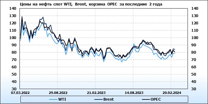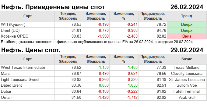 Нефть. Мировые цены спот по сортам и базисам. Данные на 29.02.2024