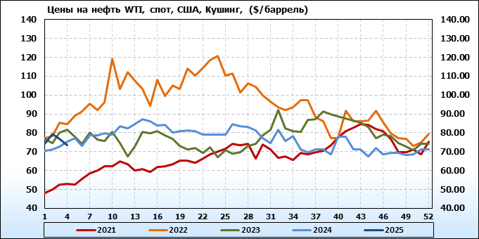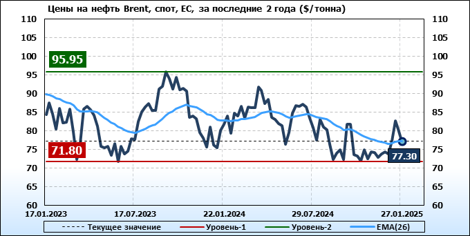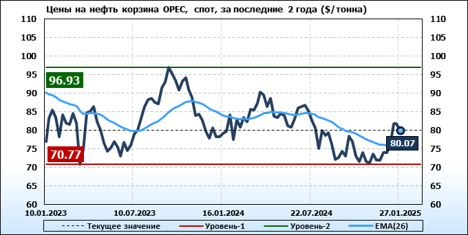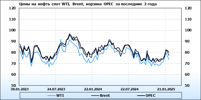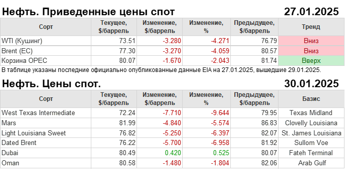 Нефть. Мировые цены спот по сортам и базисам. Данные на 30.01.2025