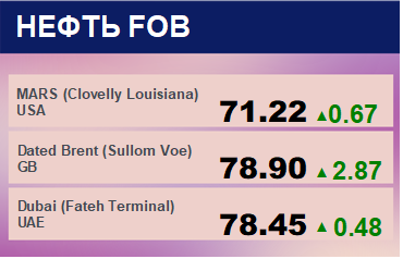 Цены на нефть сорта WTI с базиса поставки Кушинг выросли на 5.31 до 72.87 долларов за баррель. Тренд на рынке WTI медвежий. Цены на нефть сорта Brent с поставкой из портов ЕС выросли на 4.38 до 76.8 долларов за баррель. Тренд на рынке Brent падающий. Цены на корзину сортов нефти стран членов ОПЕК выросли на 4.24 до 75.01 долларов за баррель. Ценовая тенденция по корзине ОПЕК направлена вниз. Цена на сорт MARS выросла на 0.67 до 71.22 долларов за баррель. Цена на сорт Oman выросла на 0.99 до 77.33 долларов за баррель. Сорт марки Dubai подорожал на 0.48 до 78.45 долларов за баррель.
