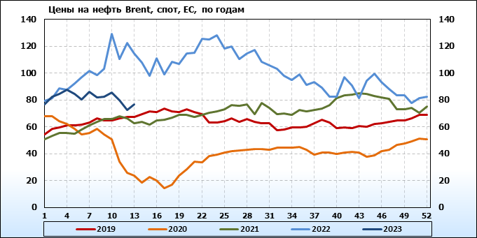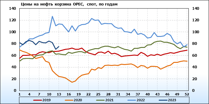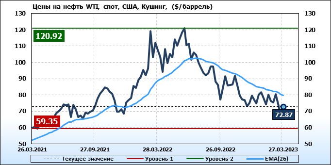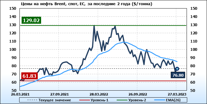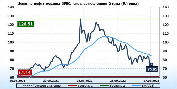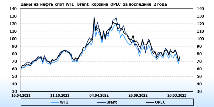 Нефть. Мировые цены спот по сортам и базисам. Данные на 30.03.2023