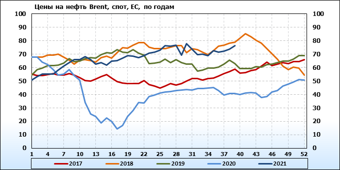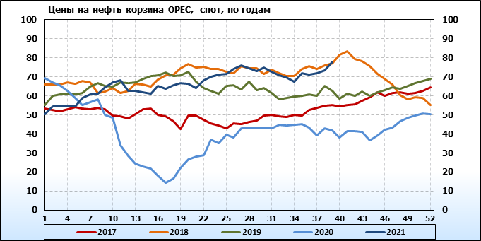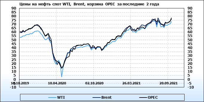 Нефть. Мировые цены спот по сортам и базисам. Данные на 30.09.2021
