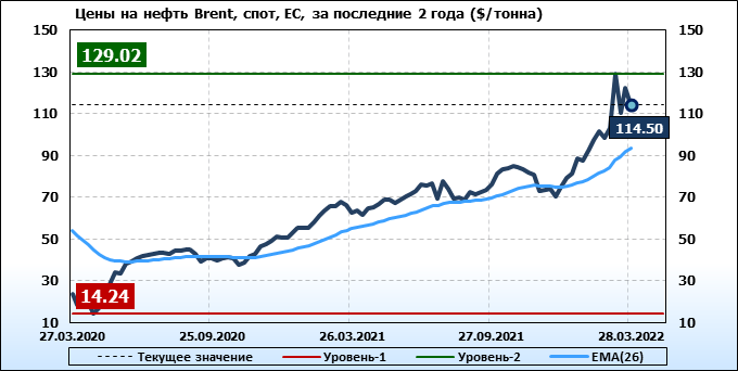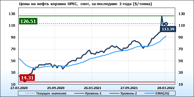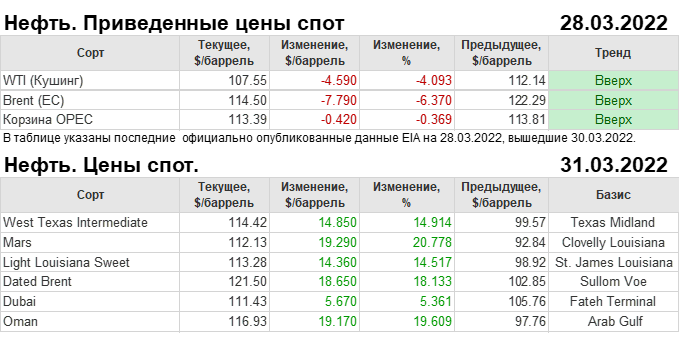 Нефть. Мировые цены спот по сортам и базисам. Данные на 31.03.2022