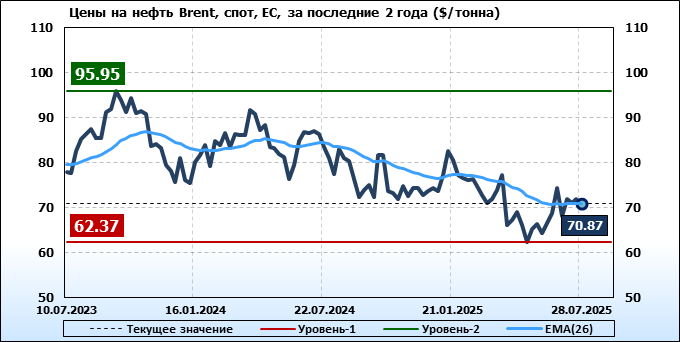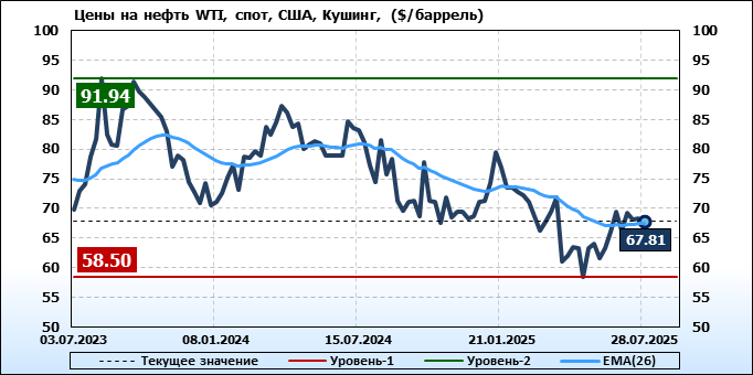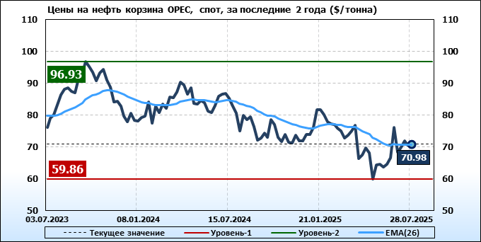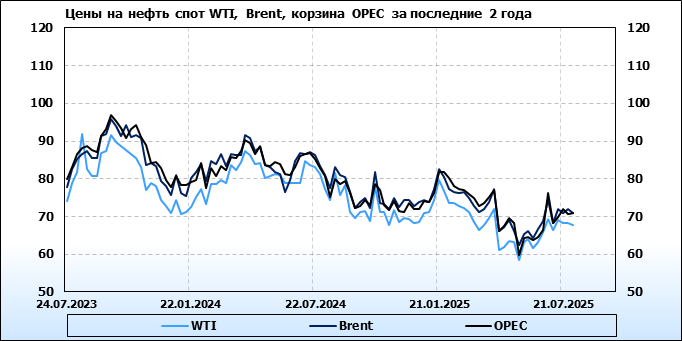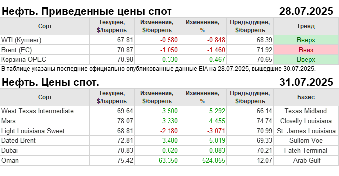 Нефть. Мировые цены спот по сортам и базисам. Данные на 31.07.2025