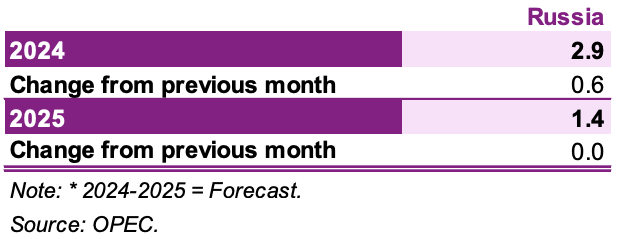 Учитывая сильные оценки быстрого экономического роста в 1К24 и продолжающуюся динамику в производстве и потреблении, прогноз роста для России был пересмотрен в сторону повышения до 2,9% на 2024 год.