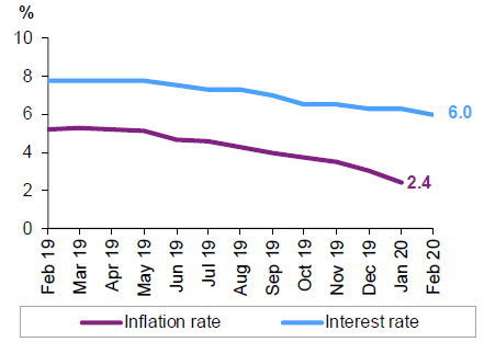 Центральный банк в феврале 2020 года снизил недельную ставку РЕПО с 6.25% до 6.00%.