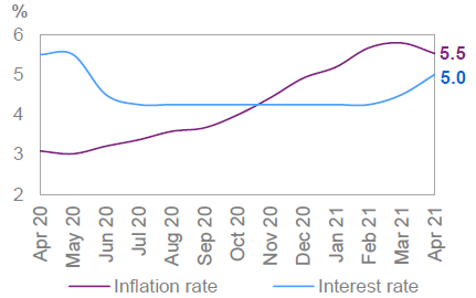 Инфляция в апреле составила 5.5%, а в марте — 5.8%.