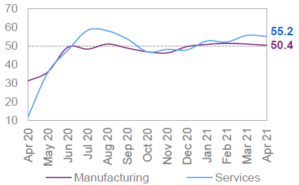 Индекс Manufacturing PMI в апреле сократился до 50.4 единиц.