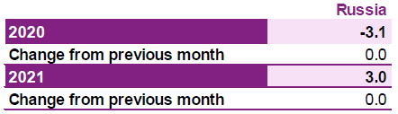 Ожидается, что в 2021 году ВВП в России возрастет на 3.0%.