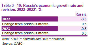 Таблица 3-10: Темпы экономического роста в России, 2022-2023, %