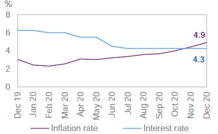 В 2020 году инфляция составила, в среднем, 3.4%.