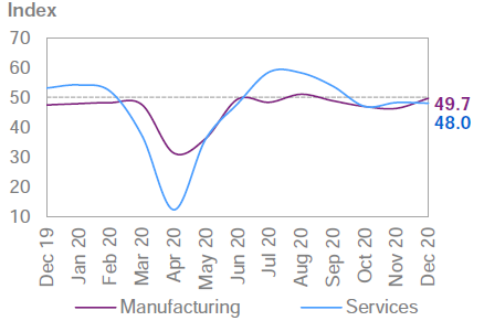 Индекс Services PMI в декабре сократился до 48.0.