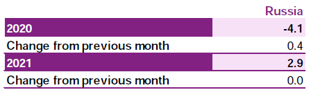 Рис. 3 Экономический рост в России и пересмотр показателей, 2020-2021 годы, %