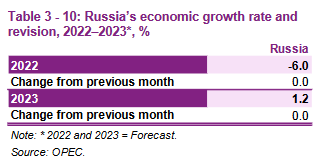 Таблица 3-10: Темпы экономического роста в России, 2022-2023, %