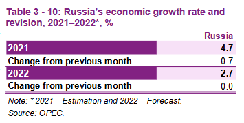Таблица 3-10: Темпы экономического роста в России, 2021-2022, %