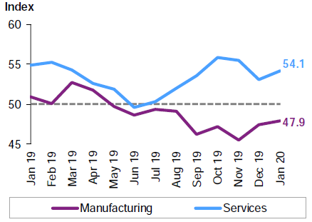 Индекс IHS Markit Manufacturing PMI в январе 2020 года составил 47.9, а в декабре 2019 года — 47.5.