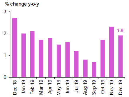 Уровень розничной торговли в декабре 2019 года оказался на 1.9% выше, чем в предшествующем году, в ноябре — на 2.3% выше.