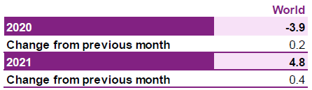 Показатель сокращения мирового ВВП в 2020 году был пересмотрен с -4.1% до -3.9%.