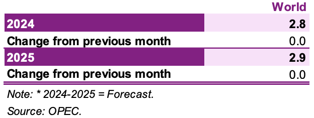 Заглядывая в будущее до 2025 года, прогноз экономического роста остается стабильным на уровне 2,9%, что соответствует оценке предыдущего месяца.