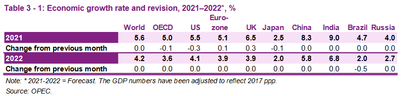 Таблица 3-1: Рост мировой экономики в 2021-2022