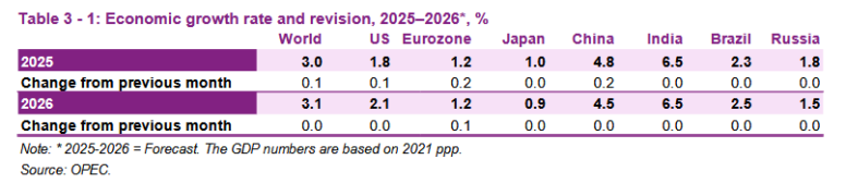 В то время как США и еврозона сохранили тенденцию к восстановлению в первой половине 2025, Индия, Китай и Бразилия пока превзошли ожидания. Недавние изменения в сторону повышения в нескольких ключевых экономиках, в частности в США, еврозоне и Китае, немного повысили прогноз роста мировой экономики на 2025 год – до 3,0%. Прогноз роста мировой экономики на 2026 год остается неизменным и составляет 3,1%.