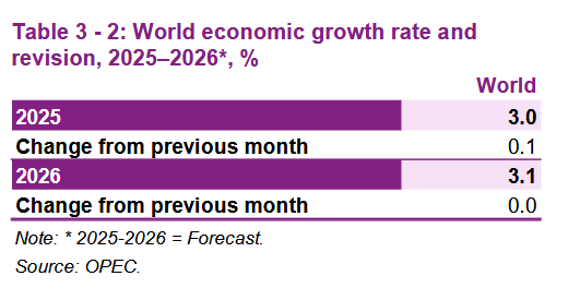 Ожидается, что в 2026 году дополнительные торговые сделки еще больше снизят неопределенность, поддерживая спрос и инвестиции. На этом фоне ожидается ускорение роста мировой экономики до 3,1%, что не изменится по сравнению с прогнозом предыдущего месяца.