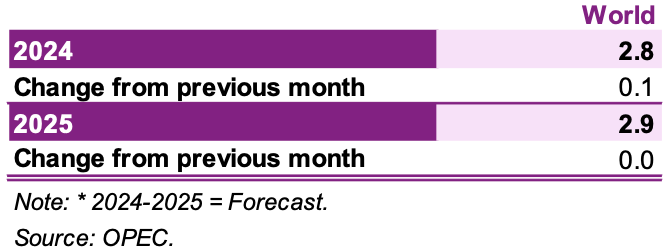 Ожидается, что в 2025 году экономический рост немного ускорится. Благодаря более сильному импульсу, ожидаемому в 2024 году, прогноз экономического роста на 2025 год составляет 2,9%, что не изменилось по сравнению с оценкой предыдущего месяца.