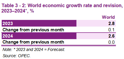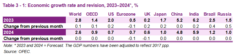 Учитывая устойчивость глобального экономического роста в 1П23 и его потенциальное продление на 3К23, прогноз мирового экономического роста на 2023 год пересмотрен до 2,8%.