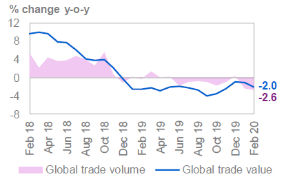 Следует отметить, что от пандемии COVID-19 особенно пострадала торговая сфера. Правительства стремятся удовлетворять спрос в товарах за счет внутреннего производства. В феврале объемы торговли в мире оказались на 2.6% меньше по сравнению с предшествующим годом.