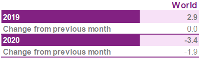 Прогнозируется, что темпы роста ВВП в 2020 году составят минус 3.4%. В предшествующем отчете указывалась цифра минус 1.5%.