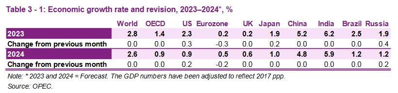 Таблица 3-2: рост мировой экономики, 2023-2024, %