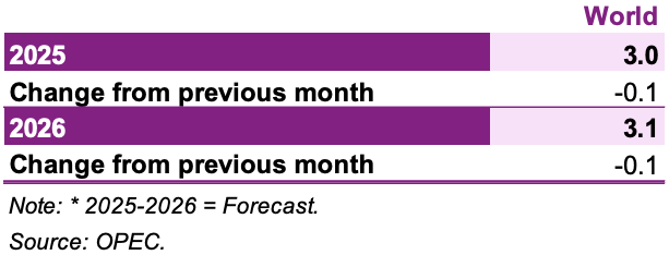 В начале года мировая экономика демонстрировала устойчивую тенденцию к росту, однако недавние изменения, связанные с торговлей, внесли большую неопределенность в краткосрочные прогнозы роста мировой экономики. В связи с этим темпы роста мировой экономики несколько снижены и составляют 3 % в 2025 году и 3,1 % в 2026 году.