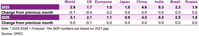 Таблица 3 — 2: Темпы роста мировой экономики и их пересмотр, 2025-2026 годы*, %