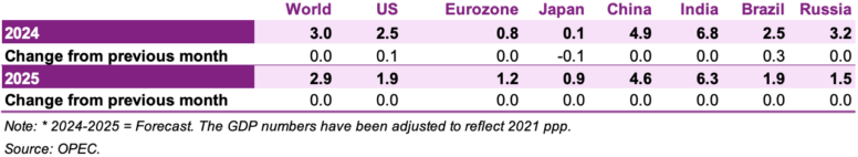 Заглядывая вперед на 2025 год, прогноз экономического роста остается стабильным на уровне 2,9%, что также не изменилось по сравнению с оценкой предыдущего месяца.