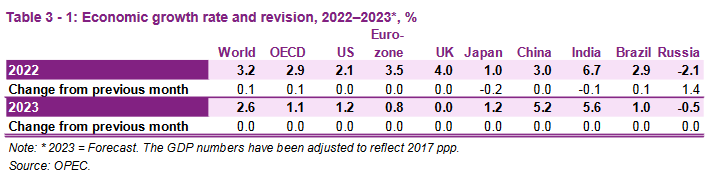Таблица 3-2: рост мировой экономики, 2022-2023, %
