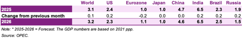 Согласно прогнозам, в 2025 году рост мировой экономики сохранит устойчивую тенденцию, в основном благодаря динамике роста в Китае, Индии и США. Кроме того, в 2025 году прогнозируется оживление в Еврозоне и Японии, а в Бразилии и России — сохранение высоких темпов роста. Хотя детальные прогнозы роста на 2026 год на данном этапе более сложны, некоторые ключевые допущения могут быть положены в основу прогноза как на текущий год, так и на 2026 год.