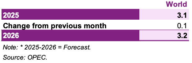 С учетом этих тенденций и динамики роста прогноз глобального экономического роста на 2025 год составляет 3,1 %, что несколько выше прогноза прошлого месяца, составлявшего 3 %. Ожидается, что в 2026 году темпы роста несколько ускорятся, и прогноз составит 3,2 %, что отражает устойчивое и стабильное развитие мировой экономики.