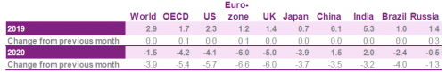 Ожидается, что в 2020 году мировая экономика претерпит рецессию. Сокращение ВВП составит 1.5%. Вместе с тем, в 2019 году рост данного показателя составил 2.9%.
