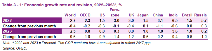 Таблица 3-2: рост мировой экономики, 2022-2023, %