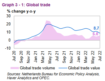 Риск снижения темпов роста в основных странах с развитой экономикой остается устойчиво высоким, и крупные центральные банки указали, что они продолжат повышать ключевые учетные ставки. Прогнозируется, что США и Китай несколько восстановятся после своих плохих экономических показателей в первом полугодии 2022 года. В то время как в еврозоне прогнозируется замедление роста в третьем квартале 2022 года и снижение в четвертом квартале 2022 года из-за ужесточения денежно-кредитной политики ЕЦБ, а также продолжающейся геополитической ситуации в Восточной Европе. Возможность повторного возникновения пандемии в зимние месяцы в Северном полушарии также может способствовать замедлению роста.