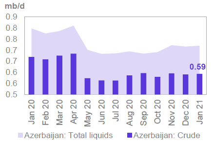 В 2021 году производительность в Азербайджане останется на уровне 0.73 млн. баррелей в день.
