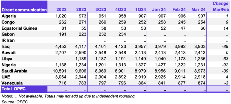 OPEC. Объемы нефтедобычи по странам от 11 апреля 2024
