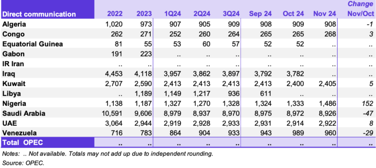 OPEC. Объемы нефтедобычи по странам от 11 декабря 2024