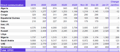 OPEC. Объемы нефтедобычи по странам от 11 февраля 2021