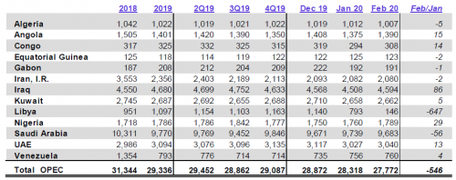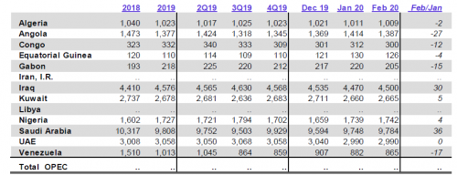 OPEC. Объемы нефтедобычи по странам от 11 марта 2020