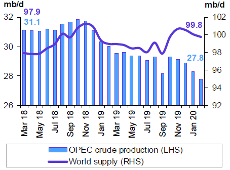 Согласно вторичным источникам, объемы производства нефти в странах ОПЕК в феврале 2020 года составили, в среднем, 27.77 млн. баррелей в день.